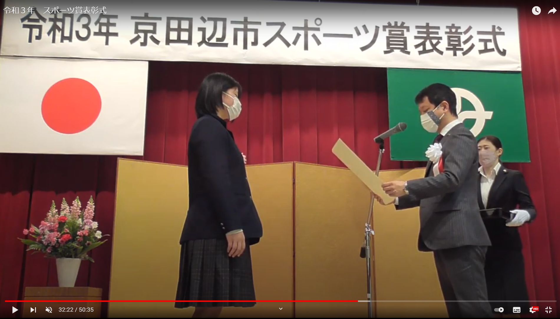 3月5日(土)に令和3年度京田辺市スポーツ賞表彰式がおこなわれました。