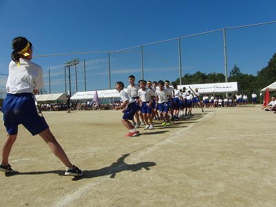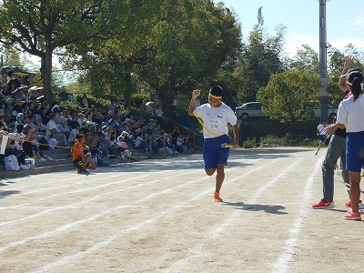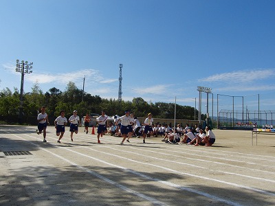 「大縄跳び」も、各学年盛り上がりました。練習の成果を発揮し、一回でも多く跳べるよう、全員が協力しました。競技の最後の「色別対抗リレー」では、応援のボルテージが上がり、大会の雰囲気は最高潮に達しました。そして、閉会・・・【競技の部】 優勝「緑ブロック」、準優勝「青ブロック」、【大繩跳び】<1年>1組、<2年>2組、<3年・大繩チャンピオン>3組(225回)の結果となり、思い出に残る第40回体育大会は幕を閉じました。様々なご協力をいただいた、保護者・地域の皆様に、心より御礼を申し上げます。
