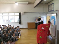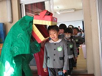 のお話にちなんで最後には、1人ずつ頭を獅子舞に噛んでもらいました。