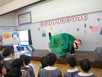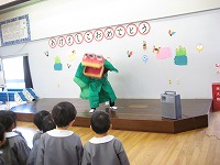 獅子舞が踊ったり、逆立ちしたりしてくれると「すごいな~」と見入っていた子ども達です。