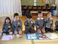 「せんせいあんな~・・・」 「サンタさん、ぼくのほしいものくれてんで!」 「おじいちゃんとおばあちゃんと神社にいってん」などなどお話が止まらない様子でした。