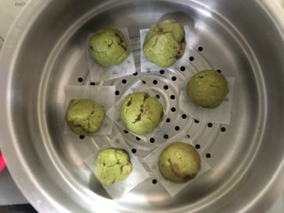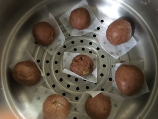 6 蒸気の立った蒸し器に入れ、霧吹きをしてから10分蒸す