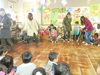 保育室では、友達とのふれあい遊びや、こま回しをして遊びました。お母さん達のこま回しにも子ども達はくぎづけでした。