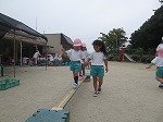 一人で渡るのがちょっぴり怖い年少さんに、年長さんが手をもってあげる