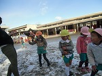 一生懸命に両手で雪を丸めて先生や友達に〝バシィ〟と当てる子どもたちはとっても勇ましかったです。