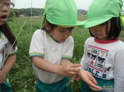 歩きながらいろいろな草花を見つけ、「これ何やろう?」と図鑑を見たり、「たけのこや!」と嬉しそうに話したり、春の自然を感じながら楽しみました。