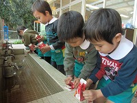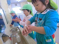 寒い冬でも元気いっぱいの子ども達。遊んだあとは手洗い・うがいでバイ菌をやっつけるよ。