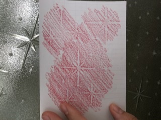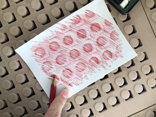 凸凹したものも見つけ、その上に紙を置き