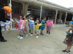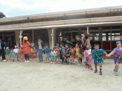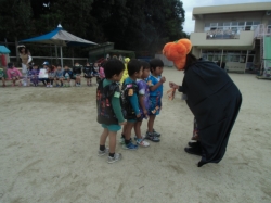 「トリック オア トリート!」と、一人一人が自分のなりたいものになりきり、一足お先に幼稚園でハロウィンを楽しみました。