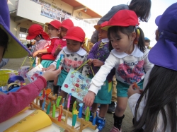 「がちゃがちゃ屋さんやってるので来てくださーい!」と他のクラスの友達にチケットを配る子どもたちもいます。