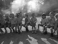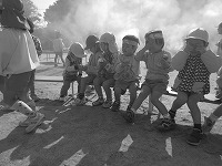 うがい、手洗いをあっという間に済ませ、小さい組のみんなで、園庭でいただきました。