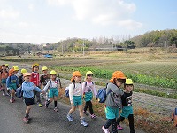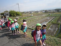 たんぼ道を歩き、つくしやタンポポを見つけ