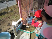 こわがりながらも、後を追いかけたり、「クワァ」となく様子を見たりしました。
