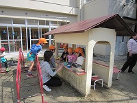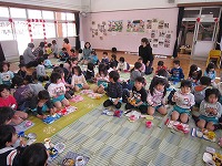楽しみにしていたお弁当の時間も、松井ケ丘幼稚園のお友達と一緒に座って