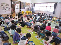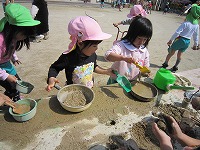 早速遊び始めました。初めて見るがちょうに興味津々の子ども達。
