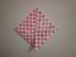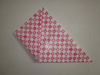 ①新聞紙や包装紙などお家にある ②三角のまんなかにむけて