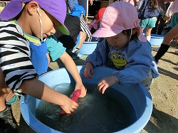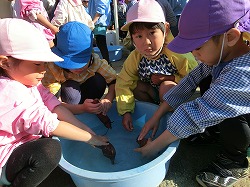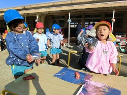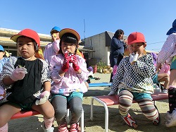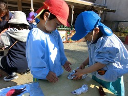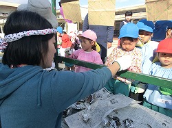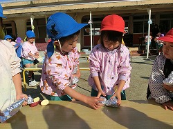 おおきい組さんは、ちいさい組さんにも優しく教えてあげています。