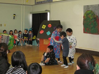 4歳児 劇遊び「あかおにとあおおにのはなし」 3歳児 歌・楽器遊び
