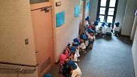 グループごとに荷物を置いて、施設内の探検に!「ここでお風呂入るんや」「この場所で寝るんやろ」「一緒に寝よう♪」とみんなで見て回りました。