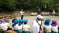 山の探検ではグループに分かれて、地図を見ながら「どの道から行く?」「ここの道からにしようよ」と相談しながら、みんなで地図に書かれているいろいろなポイントに挑戦しました。