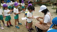 すべてのポイントを回ると園長先生から素敵なシールをもらえて、「やったー♪」「きらきらシールや」と喜んでいました。