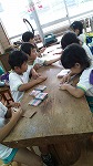 センターの方にキーホルダーの作り方を教えてもらい、世界に一つだけのキーホルダーを作りました。「みて!私は虹を書いたよ」「僕を描いた」と書いたものを見せ合いながら、キーホルダー作りを楽しんでいましたよ。