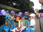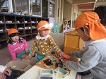 幼稚園で楽しんでいるお店屋さんごっこに、祖父母の方にも参加していただきました。「いらっしゃいませ~」の元気な声が、大きい組さんのお店から聞こえてきたり、「どうぞ」と自分たちが作ったものを渡す姿がみられたりしました。