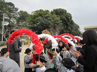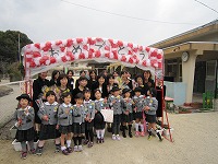 最後に、園庭で見送りにきた3歳児、4歳児、保護者が花道をつくり