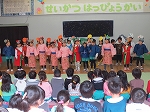 2月7日(土)の生活発表会では、劇や歌、合奏、楽器遊びを保護者の方、たくさんのお客様に来ていただき、楽しく発表することができました。その後も、発表会ごっこは、続いています。
