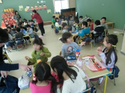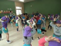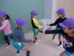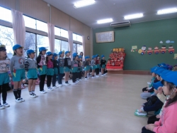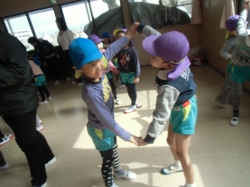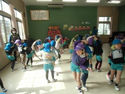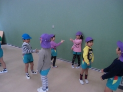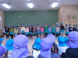 田辺幼稚園着いて、ホールでクラス紹介をした後、歌のうたい合いっこをしました!