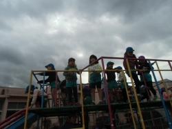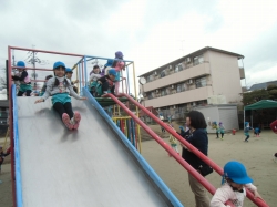 園庭に出ると、初めて見る遊具におおはしゃぎの子どもたち。