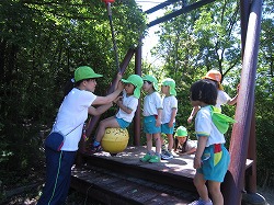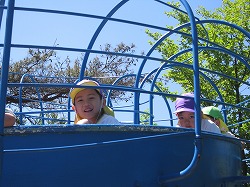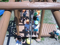 早速、幼稚園にはないアスレチックに、目を輝かせながら遊び始めました。