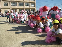 年少組、年中組、年長組がカラフルなポンポンをもって一緒に踊りを楽しみました。