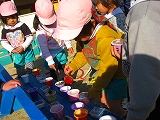 おひさまもだんだん顔をだしてきて、「まめまきしよー!!」と元気に園庭に飛び出して行った子ども達。