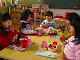みんなで、どんなの出来たかな?と、氷を見たり、アイスクリーム屋さんごっこで楽しみました。