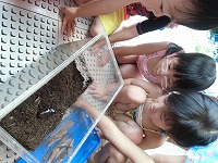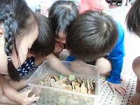 くま組では、みんなでお世話をしてきたカブトムシの幼虫が次々と成虫になり、土の中からでてきました。「かぶおくん。おはよ!」「わあ、元気いっぱいやな」と声をかけています。