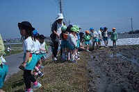 本日は、年長児と年中児が一緒に手を繋ぎ散歩に行きました。「あったんぽぽ見つけた」とつんだり、「カエルがいた!」とカエルの姿に見入ったり・・・いろいろな草花や虫などを探しながら楽しみました。