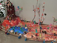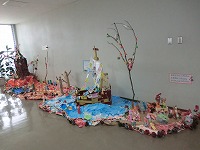 国民文化祭の会場の一つである京田辺市社会福祉センター(3階フロアー)に子どもたちの作品を展示しています。京田辺市立薪幼稚園・京田辺市立普賢寺幼稚園と3園での共同製作で秋の森で動物たちが楽しく遊んでいるところや海に浮かぶ海賊船の様子を楽しく表現しています。