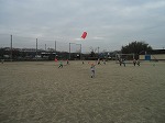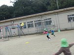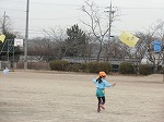 「見てみて!あがってる!」「たのしいな!」広い校庭をたくさん走り、凧をあげました。