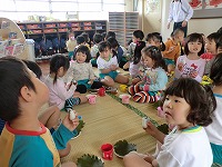 年長児とダンスをした後に柏もちを食べて少し力がついたようです!!