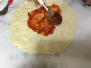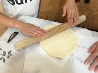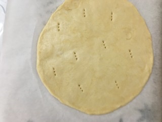 クッキングシートに生地を乗せ、円形に厚さが5mmほどになるように