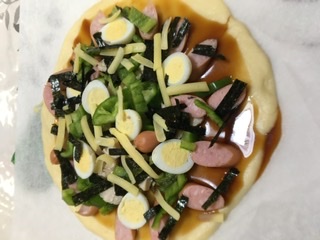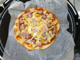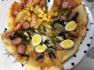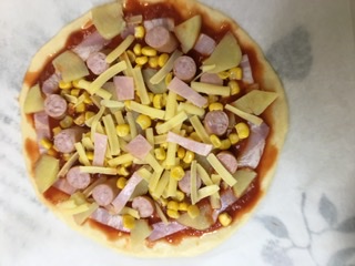 トマトソース缶、ウインナー、ハム、コーン、ハム、じゃがいも、チーズ