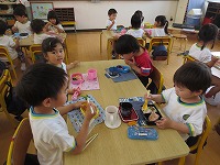 が作ってくれたお弁当をこっそり、友達に見せてあげたり、「せんせい!ネコリ(キャラクター)のお弁当つくってもらった!!」と、とっても嬉しそうな年少さんでした。