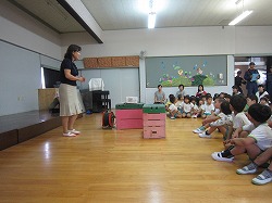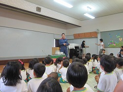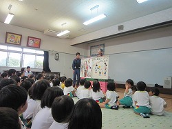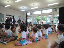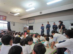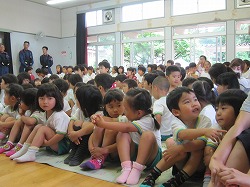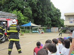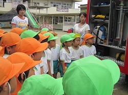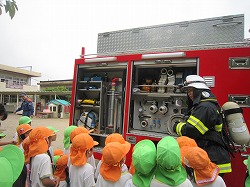 また、火は危ないため、触ったり、遊んだりしないということも教えてもらいました。子ども達も、消防士さんの話をしっかりと聞いていました。
