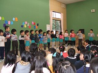 田辺幼稚園のお友達や先生に歌を聞いてもらえてとってもうれしそうな子供たちでした。