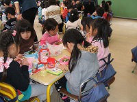 ペアのお友達と一緒にお弁当も食べました。、一緒に遊んだり、お弁当を食べるうちに、会話も増え、おしゃべりを楽しむ姿がたくさん見られました。「ばいばーい」「楽しかったよぉ」と笑顔で田辺幼稚園のお友達と先生に挨拶をして、お別れしました。