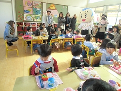 一休さんは、保育室で弁当をいただいている時も来てくれました。