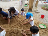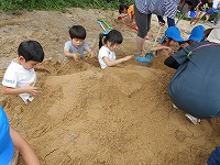 楽しい笑顔に心が動き、みんなで思い切り砂遊びを楽しみました。