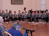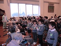 4歳児、くま組とぞう組が九十九園を訪問し、歌をきいてもらったり、一緒にわらべうたや手遊びをして遊びました。