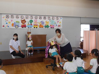 4月・5月のお友達はみんなにお祝いされて、素敵な1日を過ごすことができました。待ちに待った誕生会。本当におめでとー!!